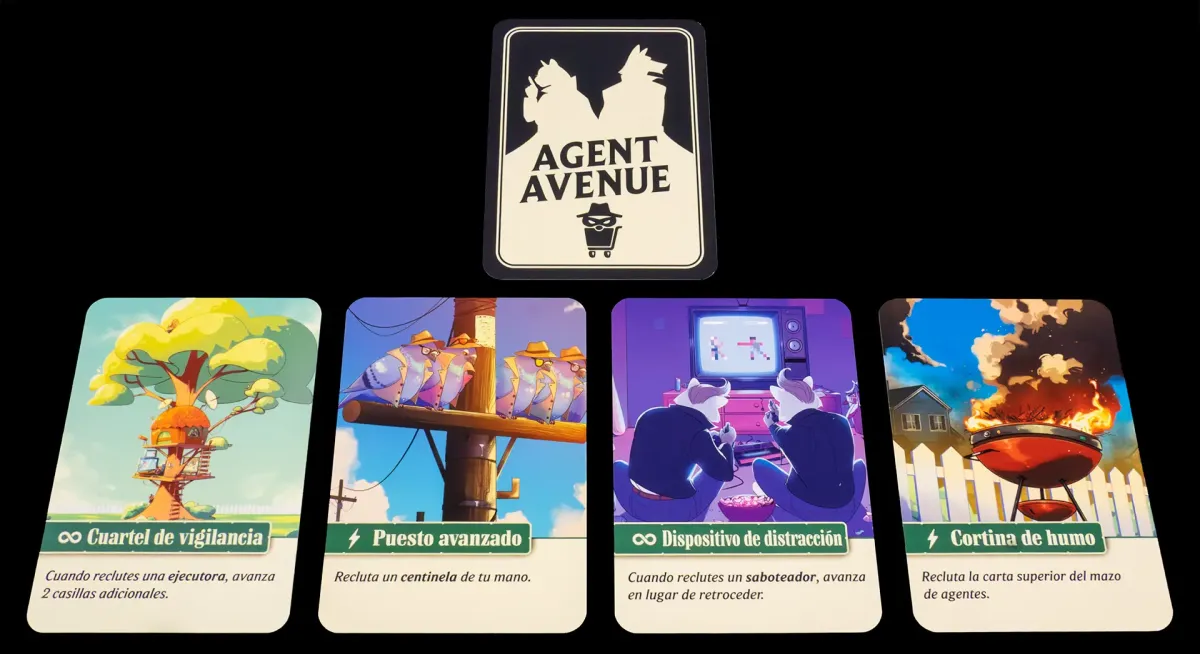 El reto del juego se encuentra en qué cartas elegir de las 4 disponibles para poner sobre la mesa en el turno de cada jugador. La criptógrafa, por ejemplo, nos dará la victoria de forma automática si conseguimos acumular tres copias de su carta. El saboteador, por otro lado, nos hace retroceder, de modo que habrá que intentar que sea nuestro rival quien tome esa carta. Si se te da bien el faroleo, seguro que disfrutarás con Agent Avenue.