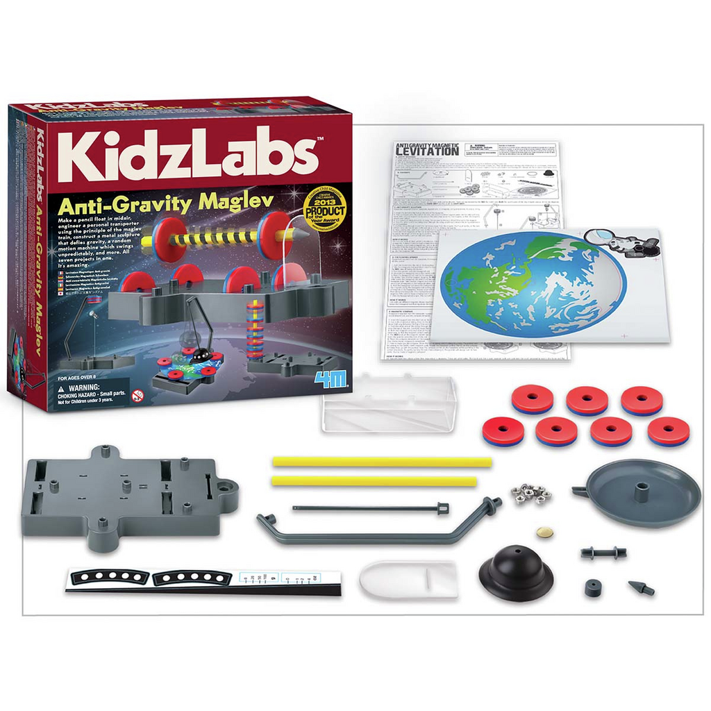 Con este set podrás crear un transportador personal basándose en el principio de la levitación magnética y construir una estructura de metal que desafía la gravedad, una máquina de movimientos aleatorios impredecible, ¡… y más! Siete proyectos posibles a realizar.