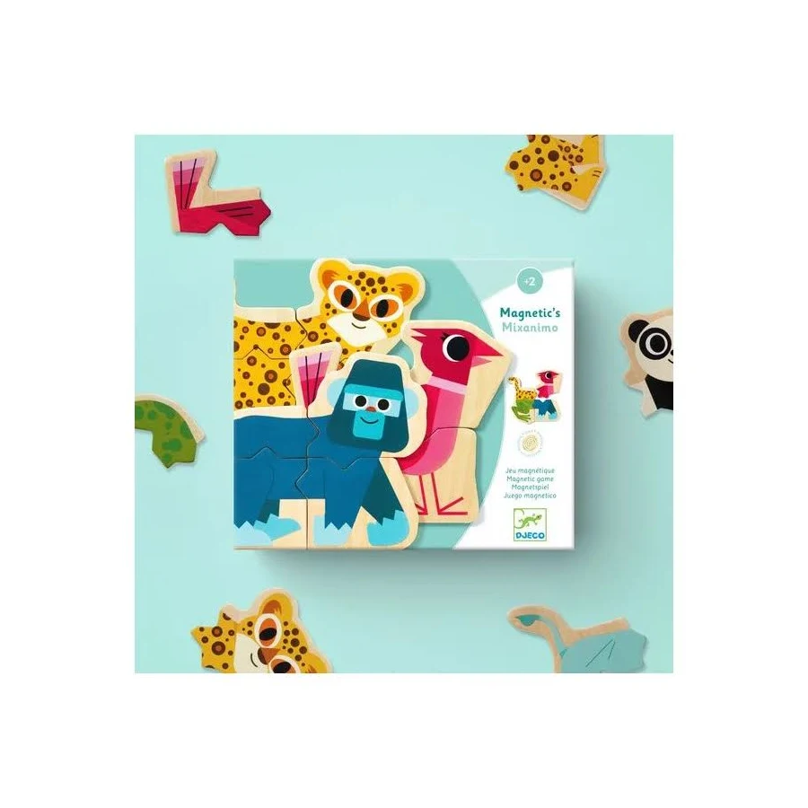 Contenido: 24 piezas de madera magnéticas (6 pequeños puzzles de animalitos)