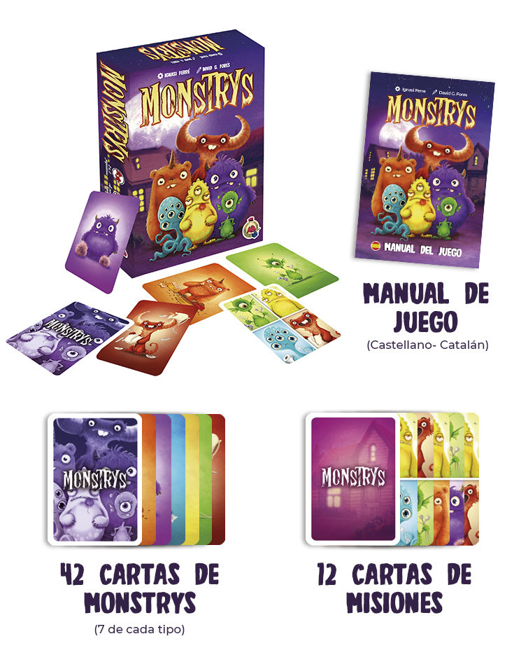 Monstrys es un juego de cartas familiar, con partidas rápidas y reglas sencillas, pensadas para que puedan jugar los más pequeños de la familia, y para introducir a los juegos de mesa a esos amigos que todavía no lo han hecho. Monstrys fue premiado como mejor juego infantil editado en catalán en 2022 en el festival de juegos de mesa del Pirineo, y premiado en la feria Fancom Barcelona 2021, como el mejor juego votado por el público.