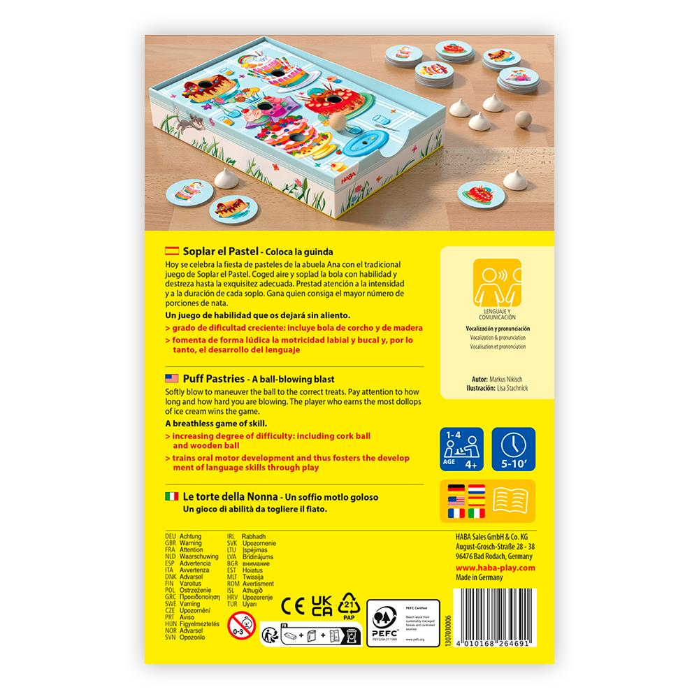 Un juego de habilidad que deja sin aliento, con un grado de dificultad creciente. Fomenta de forma lúdica la motricidad labial y bucal, y, por consiguiente, el desarrollo lingüístico.